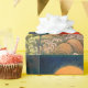 Elegante, farbenfrohe Jahreszeit mit roter Sonne, Meereswellen in lebhaften schwarzen, braunen, weißen Farben, die aus einer antiken japanischen Miniatur neu erfunden wurden. Amaterasu ist Teil des japanischen Mythos-Zyklus und auch eine große Gottheit der Shinto-Religion. Sie ist die Göttin der Sonne, aber auch des Universums. Der Name Amaterasu stammt von Amateru und bedeutet "im Himmel leuchten". Amaterasu-ōmikami bedeutet "der große August kami (Gott), der im Himmel glänzt". Für Amaterasu wird auch die Erfinderin des Reis- und Weizenanbaus, die Verwendung von Seidenwürmern und das Weben mit dem Webstuhl angerechnet.