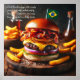 Tauchen Sie ein in das Amazonasambiente dieses mächtigen brasilianischen Picanha Burger. Ein dickes Pickanha-Rindfleisch-Stück, gegrillt bis zur süßen Perfektion, wird mit geschmolzenem Katzenkäse, karamellisierten Zwiebeln und knusprigem Speck überzogen. Alles in einem toasted brioche bun eingebettet. Eine kleine brasilianische Fahne sorgt für eine festliche Touch, während eine Seite mit knusprigen Yuca-Pommes frites Erholungen auf einer rustikalen Holztafel vervollständigt, die diesen brasilianischen kulinarischen Genuss vervollständigt.