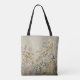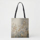 This tote bag features an ethereal, meadow-inspired landscape rendered in a delicate watercolor style. Stems of wildflowers and clover-like foliage stretch upward against a warm linen-textured background, creating a tactile, fabric-like appearance.