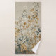 This towel set features an ethereal, meadow-inspired landscape rendered in a delicate watercolor style. Stems of wildflowers and clover-like foliage stretch upward against a warm linen-textured background, creating a tactile, fabric-like appearance.