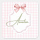 Amelia Personalisiert Pink Bow & Gingham Print Quadratischer Aufkleber