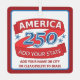 These America 250 metal ornaments make great holiday gifts for family and friends as well as yourself. Personalize with your state or other text on the red ribbon style design and up to two lines below that, printed on both sides. America 250 merchandise is a patriotic way to celebrate 1776 2026 America's 250th anniversary and these red, white and blue square metal Christmas tree ornaments are a fun way to commemorate this historic event. Hang these semiquincentennial ornaments in the holiday tree, from your rear view mirror or display hanging from a bookcase or shelf as treasured keepsakes.