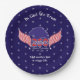 The United States will celebrate its 250th anniversary of independence on July 4, 2026, and these plates are a fantastic touch to celebrate! You can edit the text: In God We Trust and the below text. This design is available on a red and blue background. Available matching paper napkins and cups.
