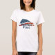 America First über eine US-Flagge in rot, weiß und blau. Die berühmten Worte aus Donald Trumps Antrittsrede 2017 sind auf der Rückseite gedruckt. Originelles Design von Linda Becker.