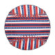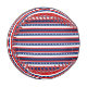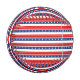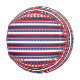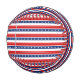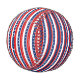 Baseball mit roten Stichen und roten und blauen Streifen mit weißen Sternen auf weißem Hintergrund.