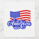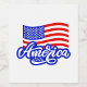 Illustration des Wortes "America" in einem stilisierten Script-Schriftart, mit einer schwindenden amerikanischen Flagge darüber! Das Wort "Amerika" wird in tiefblauer Farbe mit einer hellblauen Kontur dargestellt, was ihm einen dreidimensionalen Effekt verleiht. Unter dem Wort gibt es eine Reihe kleiner weißer Sterne, die die Sterne auf der Flagge widerspiegeln. Die amerikanische Fahne ist mit roten und weißen Streifen und einem blauen Kanton mit weißen Sternen dargestellt. Der Gesamtstil ist sauber und grafisch, mit einem patriotischen Thema.