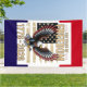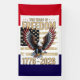 A powerful bald eagle spreads its wings across a weathered field of stars and stripes, set against bold bands of red, white, and blue. Above it, five red stars crown the phrase 250 Years of Freedom, while 1776–2026 anchors the design below. The overall look blends strength, heritage, and patriotic pride, marking a quarter‑millennium of American independence.