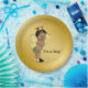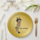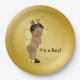 Bienenstudiose-Teller mit einem hübschen Afroamerikaner-Baby mit niedlichem Hummeloutfit auf einem goldenen Hintergrund mit fliegenden Hummeln. Sie können Text hinzufügen, um diese schwarzen und goldenen Bienenduschpapier-Teller zu personalisieren, und Sie können den goldenen Hintergrund entfernen, um die Farbe Ihrer Wahl hinzuzufügen.