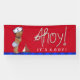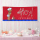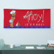 Nautical Baby Duschbanner mit einem bezaubernden afrikanischen, amerikanischen, ethnischen Segler Jungen auf einem roten und blauen Hintergrund. Sie können Text hinzufügen und die Hintergrundfarbe auf diesem niedlichen nautischen Babyduschbanner ändern.