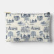 Navy und Crème Toile Muster von meinem eigenen Design. Die Einzelbilder sind historische amerikanische Zuhause, die im 18. Jahrhundert gezeichnet wurden, mit freundlicher Genehmigung der Kollektion Public Domain der New York Public Library.
