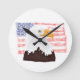 American Bald Eagle and Flag - Transparent White. Runde Wanduhr