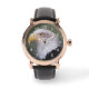 Die stilvolle Armbanduhr mit weißen Ziffern, die das Foto eines prächtigen Bald Adlers mit einem Hakenschnabel zeigt. Wählen Sie Ihre Uhr aus verschiedenen Stilen.