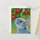 "Blue in the Strawberries" Die Watercolor Art Postcard des Künstlers Jean Weiner "Blue in the Strawberries" zeigt ein junges, amerikanisch-blauer Kaninchen, das eine reife rote Erdbeere schnüffelt! Diese Erdbeerentdeckung im Hinterhof wird für das Kaninchen zu viel sein, um Widerstand zu leisten. An nur einem zu nibbeln wird nicht weh tun! Sicher, jeden Hasen-Fan zu begeistern!