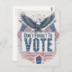 A bold, vintage-inspired patriotic illustration featuring a powerful bald eagle with wings outstretched above a classic sign reading “Don’t Forget to Vote.” Framed by crossed American flags, star accents, and a ballot box below, the design combines traditional Americana with a clear message. The distressed texture and red, white, and blue palette give it a timeless, poster-style look—perfect for election season awareness, civic pride, and voter encouragement.