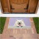 The soft lavender background adds a gentle and stylish touch, making it perfect for modern home decor. Designed with extra space at the top and bottom, it allows easy personalization with names, welcome messages, or custom text—ideal for unique doormats and thoughtful gifts for dog lovers.