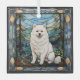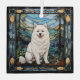 Ein amerikanischer Eskimo Hund, der in einem Glasfenster-Modus ausgeführt wird.