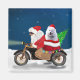 Ein Weihnachtsmann, der mit dem Fahrrad Weihnachtsbaum liefert, und ein amerikanischer Eskimohund als Geschenk, ist eine Weihnachtsgeschenkidee für jemanden, der diesen Hund züchtet.