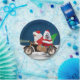 Ein Weihnachtsmann, der mit dem Fahrrad Weihnachtsbaum liefert, und ein amerikanischer Eskimohund als Geschenk, ist eine Weihnachtsgeschenkidee für jemanden, der diesen Hund züchtet.
