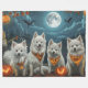 Entfesseln Sie den unheimlichen Geist mit diesem unheimlichen Halloween-Design, das eine Hundepackung unter einem dunklen, mondbeleuchteten Himmel bietet, umgeben von fliegenden Fledermäusen und glühenden Kürbissen. Ideal für diejenigen, die mit ihren wütenden Freunden eine Touch voller Furcht Liebe haben!
