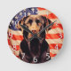 Ein nah aufgestelltes Portrait eines Schokoladenschilds, dessen Fell in einem malerischen Stil dargestellt wird, mit einer leicht verschwommenen amerikanischen Flagge als Hintergrund. Die Augen des Hundes konzentrieren sich auf den Betrachter und vermitteln ein Gefühl von Loyalität und Patriotismus. Die Farben Rot, Weiß und Blau der Fahne sind gedämpft und sorgen für eine warme und nostalgische Atmosphäre. Ideal für Arbeitsuchende.
