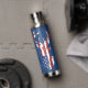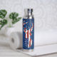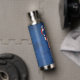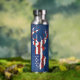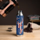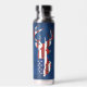 Silhouette mit amerikanischer Fahne auf blauem Lederhintergrund.