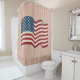 Ein Vintager Stil mit amerikanischer Fahne schmückt diesen stilvollen Duschvorhang.