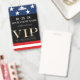 Dieser VIP Party Pass zeichnet sich durch ein patriotisches amerikanisches Flaggendesign aus, mit einem Banner mit weißen Sternen über einem blauen Hintergrund, der über den oberen Teil platziert ist, und einem Banner mit roten und weißen Streifen über dem unteren Teil. Der Titel "VIP" wird in großen goldenen Texten gedruckt, wobei das Datum und der Name des Ereignisses oben gedruckt werden, und unten steht der Titel "Alle Zugangsdaten". Auf der Rückseite des Abzeichens befindet sich ein Leerzeichen, um eigene benutzerdefinierte Text- oder Additionsereignisinformationen hinzuzufügen. Es ist ideal für Party, Spendenaktionen, Konzerte oder andere Veranstaltungen.