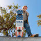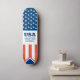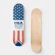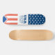 Zeigen Sie während Ihres Skate Ihre patriotische Unterstützung! Dieses Design hat weiße Sterne auf einem dunkelblauen Hintergrund auf einem Ende des Skateboards mit roten und weißen Streifen und roten, weißen und blauen Pfeilen auf dem anderen Ende des Brettes. Im Zentrum befindet sich die anpassbare Vorlage, in der Sie einen Namen und einen anderen Text hinzufügen können. Klicken Sie auf die Schaltfläche "Diese Vorlage personalisieren", um den Text zu aktualisieren. Design von Frau_Jade. © 2021Ms_Jade