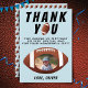 American Football Ball Sports Kids Junge Geburtstag Foto Danke Karte. Fußball-Geburtstag Dankeschön-Karte mit einer Dankeschön-Nachricht, Name und Foto auf einem Fußball. Ideal für Kinder, die Fußball und Sport Liebe.