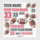 American Football Ball Player Team Name Number Kids Sticker. Verschiedene Aufkleber in einem amerikanischen Fußball Thema. Der Text ist in rot und schwarz. Sie können die Aufkleber personalisieren - Ihren Namen, Mannschaftsnamen, Teamnummer, Jahresnummer und Ihren Namen auf dem Fußball. Sie haben auch Fußballbälle in verschiedenen Größen.
