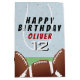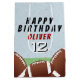 American Football Balls Kinder glücklich Geburtstag Mittlere Geschenktasche. Fußball-Geburtstagsgeschenktasche mit Kindername, Alter und Fußball-Bälle. Geben Sie Ihren Namen und Ihr Alter ein. Ideal für Kinder, die Fußball und Sport Liebe.