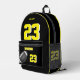 "Football Rucksack High School personalisiert" White blue Monogram Initials Gray Pattern Black Luggage Tag. Elegantes einfaches, einfaches, modernes Mädchen und Jungen und schwarz und nettes Design, mit individuellem Text und Monogramm, mit exklusivem Monogramm-Muster, perfektes Geschenk für Reisende, Schulsport und andere