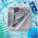 Eine alte Dampflokomotive durchquert einen schneebedeckten, kargen Bauernhof im Mittleren Westen mit Dampf, der das Design der amerikanischen Fahne darüber bildet