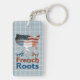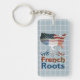 American French Roots Keyring. Eine Karte der USA mit den Fahnen von Frankreich und Amerika, und der Text "French Roots" darunter. Großartig für Amerikaner, die stolz auf ihre französische Herkunft sind, und für Ex-Pats.