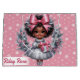 Feiern Sie den stilvollen Urlaub mit diesem schönen afroamerikanischen Mädchen Weihnachtskranz! Mit einem zauberhaften Mädchen in einem schimmernden silbernen Kleid, mit einem rosa Geschenk und umgeben von festlichen rosa und silbernen Akzenten. Ideal, um Charme, Freude und Diversity in Ihrem modernen Urlaubshotel zu vereinen.