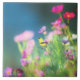 Schöne gelbe und schwarze Goldfinch auf einer rosa Coreopsis