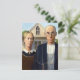 Das ist das klassische Grant-Holzgemälde, amerikanisch-gotisch, das einen Bauer und seine Ehefrau vor ihrem Bauernhaus stehend zeigt, er mit seiner Pitchfork, sie sieht ihn seitlich an.