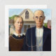Das ist das klassische Grant-Holzgemälde, amerikanisch-gotisch, das einen Bauer und seine Ehefrau vor ihrem Bauernhaus stehend zeigt, er mit seiner Pitchfork, sie sieht ihn seitlich an.