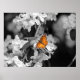 American Lady Butterfly On Apple Blossom, Poster. Digitale Kunst. Schwarz-Weiß-Foto mit markiertem Schmetterling, Schönes Design für viele verschiedene Anlässe.