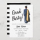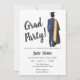 Aquarellfarbene Abschluss Illustrationen mit jungen Mann mit Abschluss und Kappe. Ein elegantes und stilvolles Design mit vollständig bearbeitbaren Vorlagen, mit denen Sie den Namen, das Datum, die Uhrzeit und den Standort leicht anpassen können.