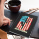 Patriotisches amerikanisches Lineman-Kunstwerk mit amerikanischer Flagge und funktionierendem Lineman. Eine tolle Geschenkidee für jeden amerikanischen Lineman am Geburtstag oder Weihnachten.