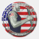 Realistisch zerknittert amerikanische Flagge und ein Stahlmann, der für die amerikanische Fertigungsindustrie, American Made American Strong steht.
