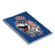 American Patriotic Dinosaurier, eine faszinierende und lebendige Illustration eines kartoonischen, vektorkunsthistorischen Designs eines wilden Dinosauriers mit einem niedlich spielerischen Verhalten. Der Dinosaurier wird mit einem breiten Mund dargestellt, der offen ist, um seine für Kinder niedlichen Zähne zu zeigen. Auf seinem Kopf steht ein amüsant patriotischer Tophut, der mit den US Flagge der amerikanischen Fahne geschmückt ist. Der Dinosaurier selbst wird in auffallendem Weiß gerendert und steht in scharfem Kontrast zum schwarzen Hintergrund. Der Hut mit roten und weißen Streifen mit weißen Sternen auf einem blauen Feld verleiht eine unerwartete und skurriotische patriotische Touch. Die illustrierte Figur und der Hut werden durch kühnen Konturen definiert, die die Aufmerksamkeit des Betrachters gezeichnet haben und eine spielerische und dennoch animierte Atmosphäre schaffen. Die einzigartige Kombination von Elementen in diesem Design ergibt ein humorvolles und lebendiges Bild, das die Zuschauer begeistern wird.
