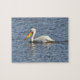 Amerikanischer Pelikan, der auf einem ruhigen See schwebt.