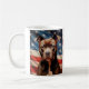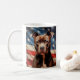 American Pit Bull Terrier vor dem Hintergrund der amerikanischen Flagge