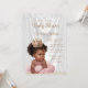 Afrikanisch-amerikanische Prinzessin Baby Dusche Einladung mit einem hübschen Baby Mädchen mit einem hübsch rosa Tutu und Juwel Tiara auf einem eleganten weißen Satin Hintergrund. Diese afrikanisch-amerikanische Prinzessin Baby Dusche lädt Sie zu einem personalisierten Event mit Details ein.