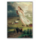 Dieses Bild zeigt Manifest Destiny, den Glauben an die westliche Ausdehnung der Vereinigten Staaten vom Atlantik zum Pazifik. Es wurde als Gravur "Geist der Grenze" weit verbreitet. Die Siedler bewegen sich nach Westen, geleitet und geschützt von Kolumbien, unterstützt durch moderne Technologie wie Eisenbahnen, und treiben Indianer und Bison in Vergessenheit. Kolumbien repräsentiert Amerika, das in einem römischen Toga verkleidet ist, um den klassischen Republikanismus zu repräsentieren, und bringt den aufgeklärten Osten in den dunklen Westen.
