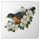 Vogelkunst mit American Robin auf Baumzweig unter Dogwood-Blume.