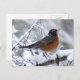 Schicken Sie diese Postkarte an die Vögel- und Tierliebhaber, die Sie kennen. Es zeigt einen schönen amerikanischen Robin im Schnee. Dieses hübsche Foto von Wintervögeln wurde in meinem Garten aufgenommen
