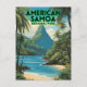 American Samoa National Park Travel Postcard Design. Der American Samoa Nationalpark ist ein tropischer Park auf drei Inseln, bekannt für seine üppigen Regenwälder, Korallenriffe und die reiche samoanische Kultur. Der Park bietet atemberaubende Küstenblicke, vielfältige Tierwelt und Möglichkeiten zum Wandern, Schnorcheln und Erkunden traditioneller Dörfer.